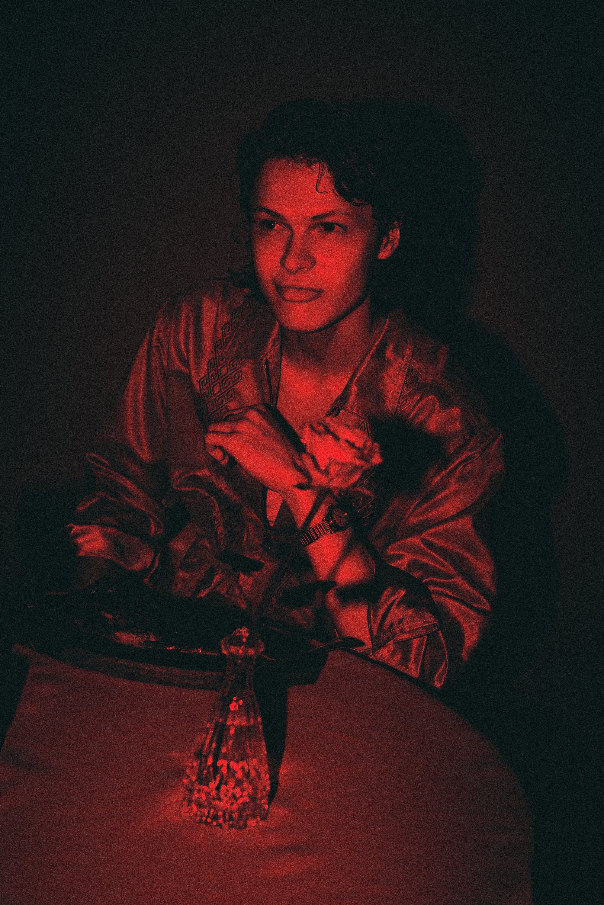 SLUB SATIN OPEN COLLAR JACKET