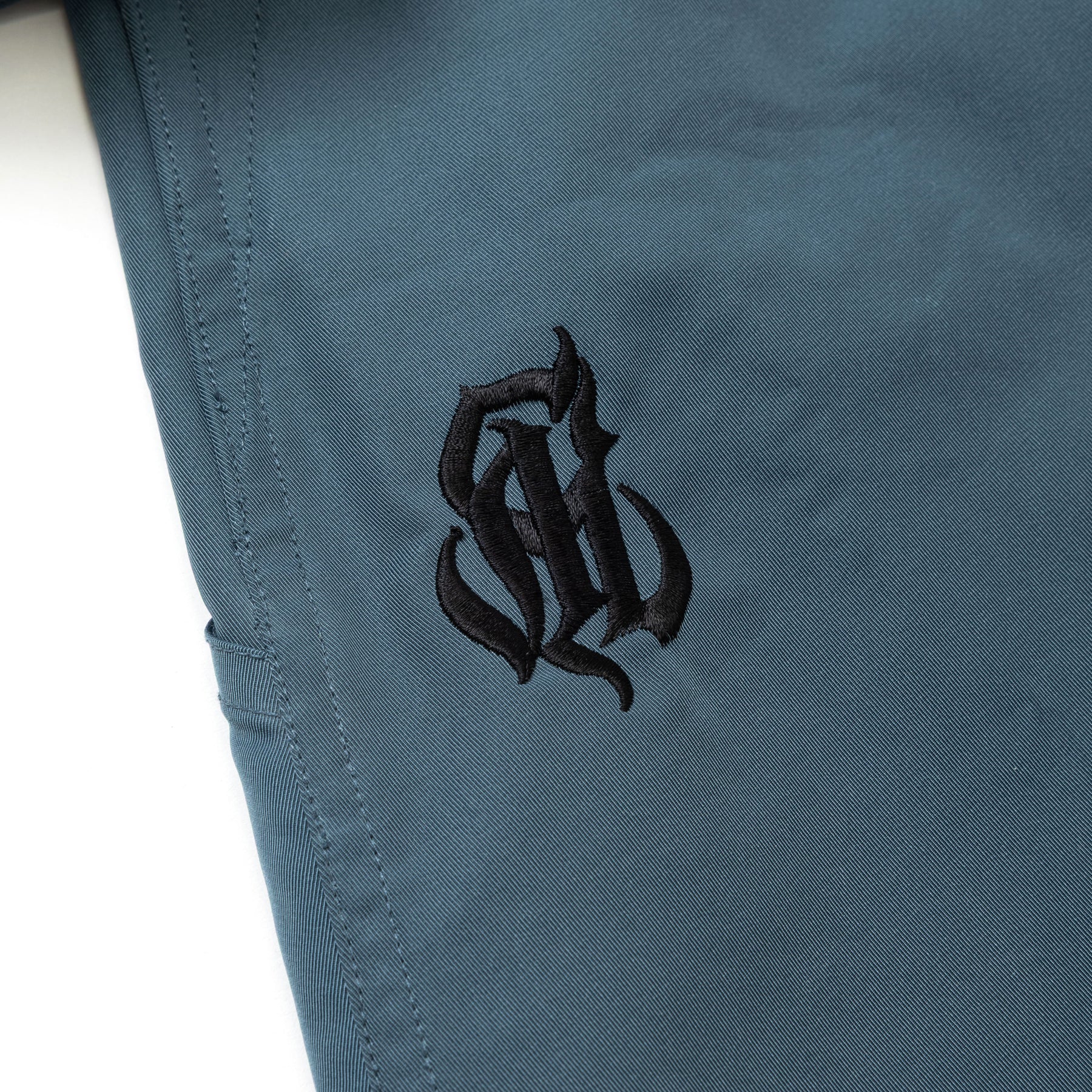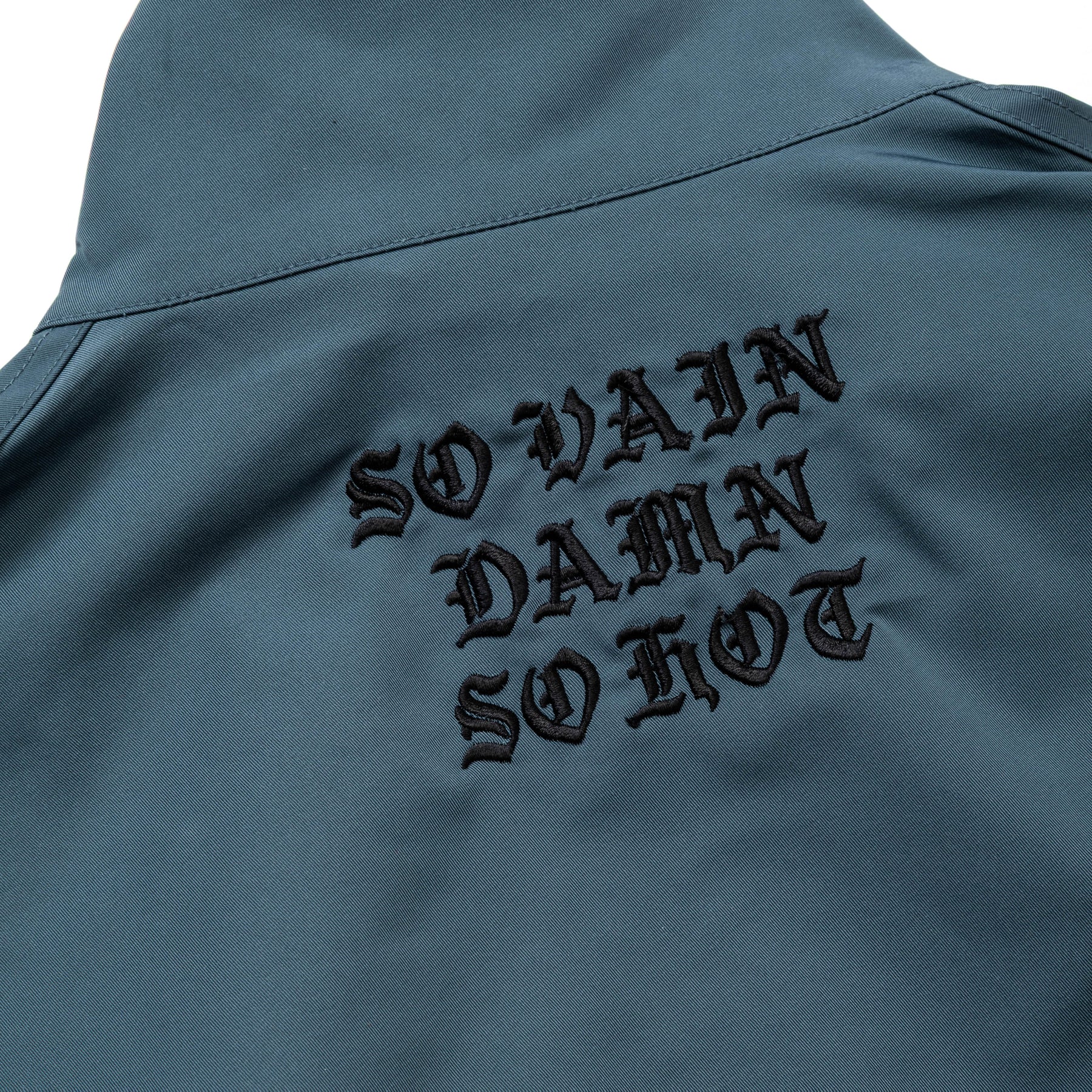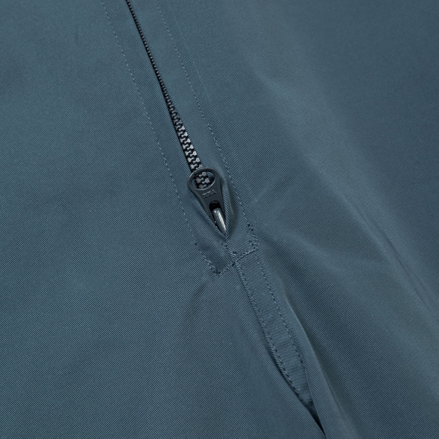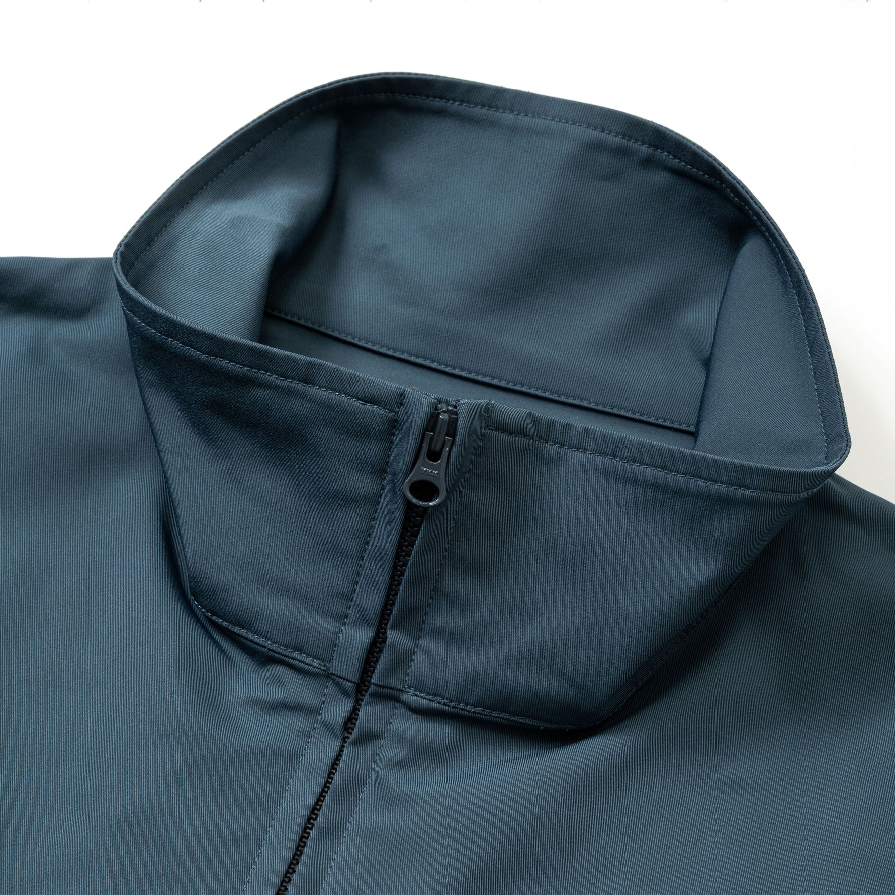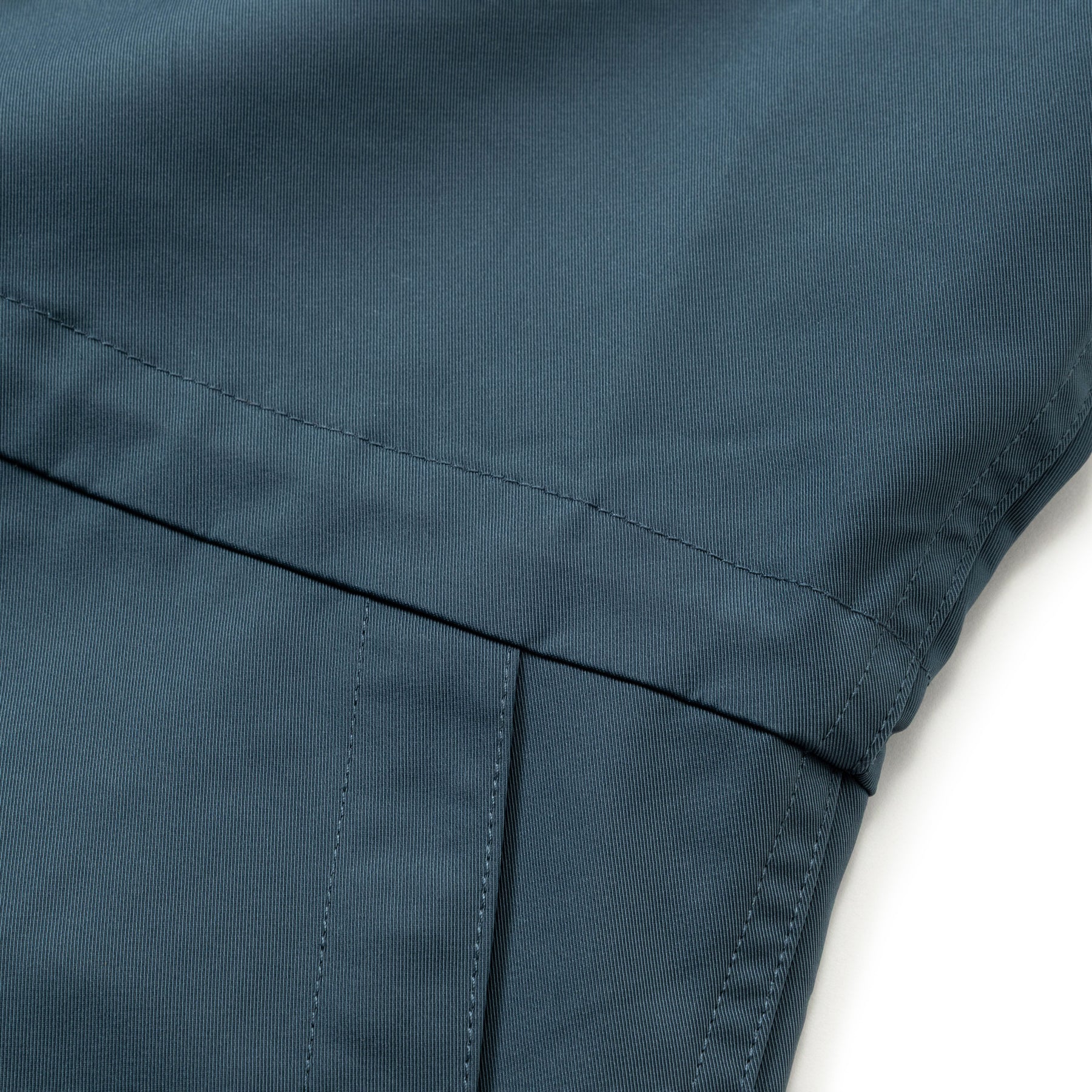 ジャンプスーツ。撥水性のあるポリエステル素材を採用。左胸、背面襟元、右ポケット部にそれぞれ刺繍を配した