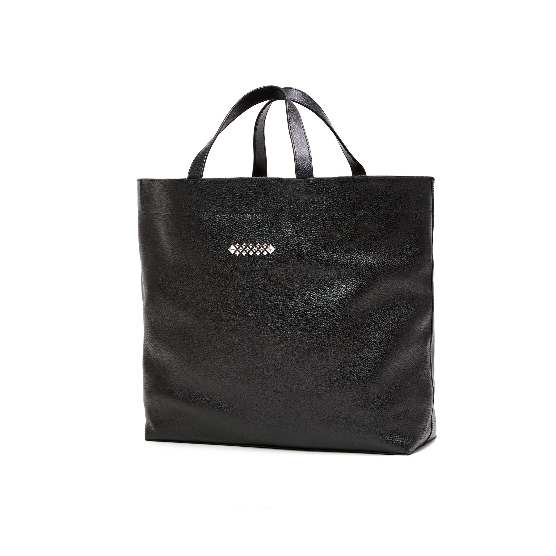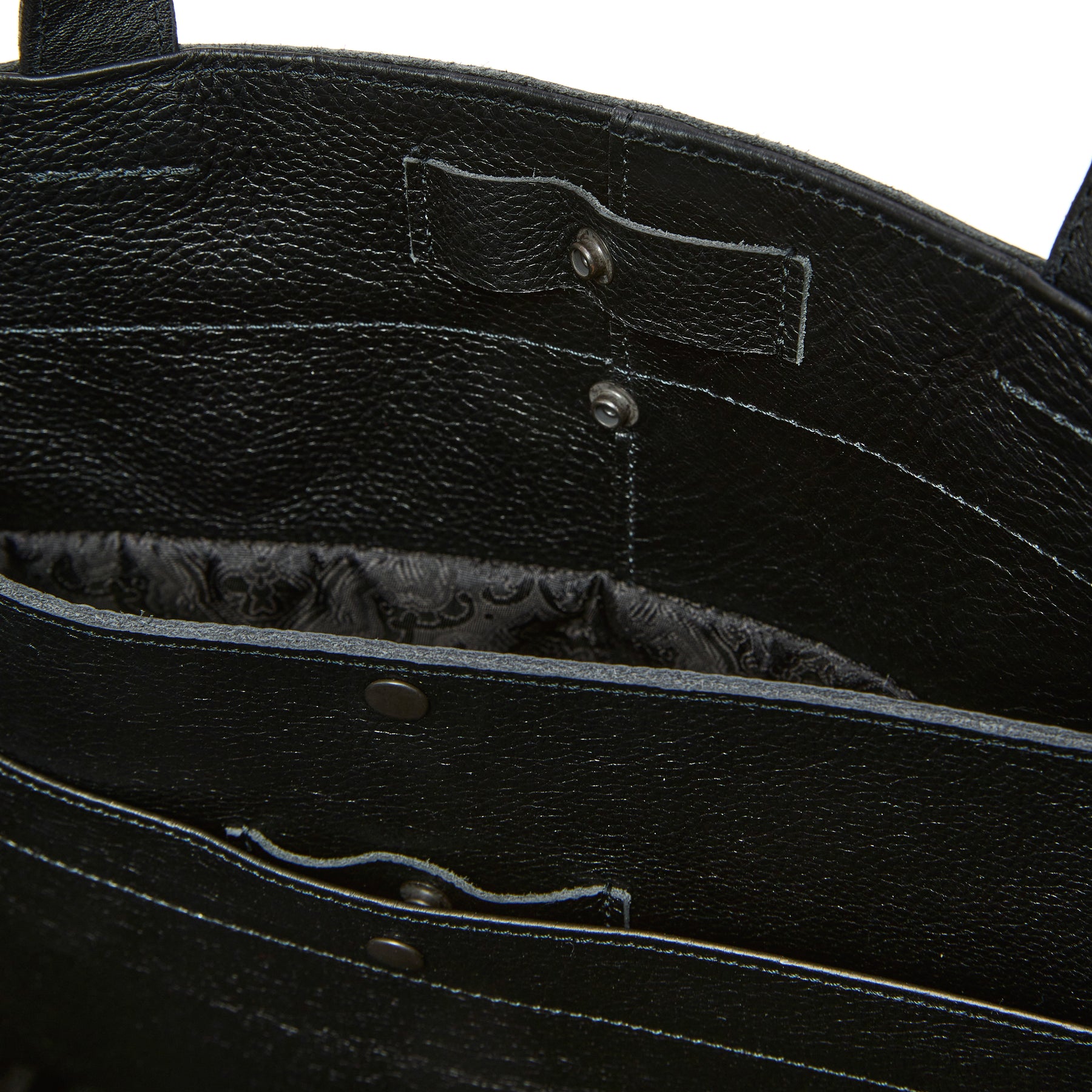 シボ感あるレザーで作製されたトートバッグ。シボが特徴のレザーで使い込む程に、シボ感が消え、光沢感が出てくる経年変化。裏地にはオリジナルペイズリー柄のキュプラ生地を採用。内部の間仕切りポケットはスナップボタン仕様で着脱可能。