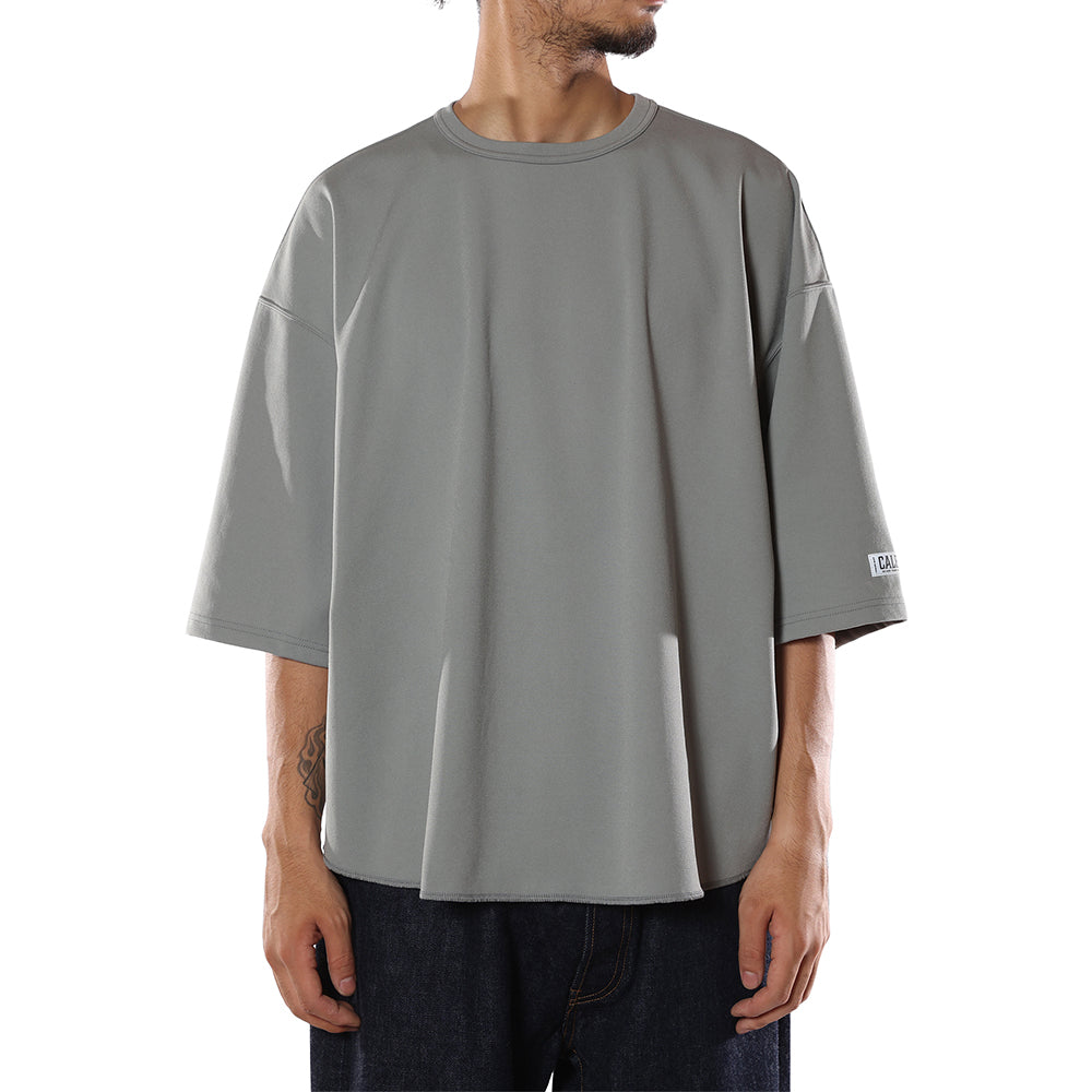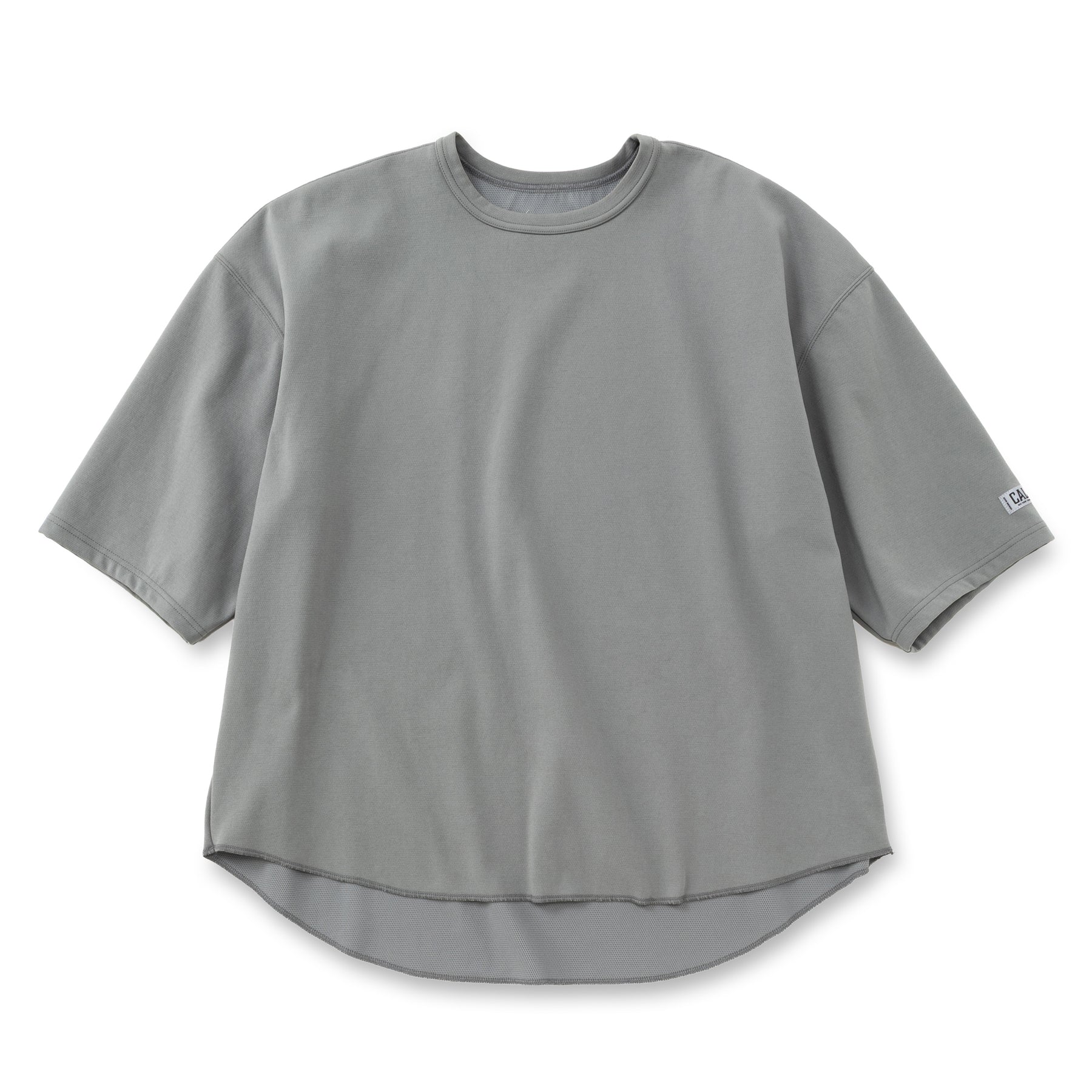 五分袖バックメッシュカットソー。32Gのハイゲージで編み込み、裏面をメッシュにしたポンチ素材を採用。清涼感ある肌触りと、弾力のある柔らかさ、型崩れがしにくいのが特徴。ストレッチ性、吸水速乾、防シワ性、ウォッシャブル性などを持つ多機能素材。裾ラウンド仕様で左袖にリフレクターネームが付く。