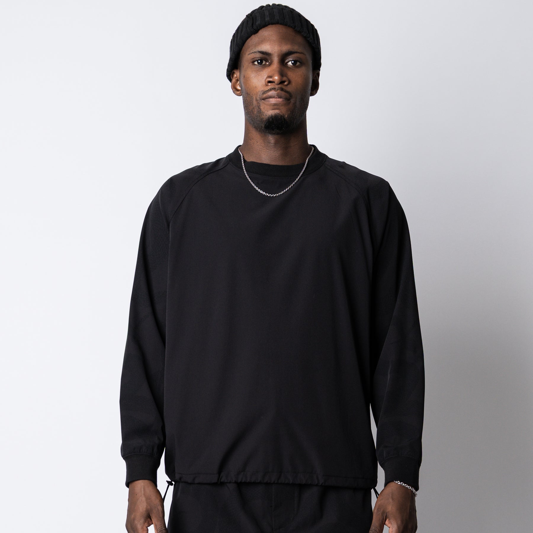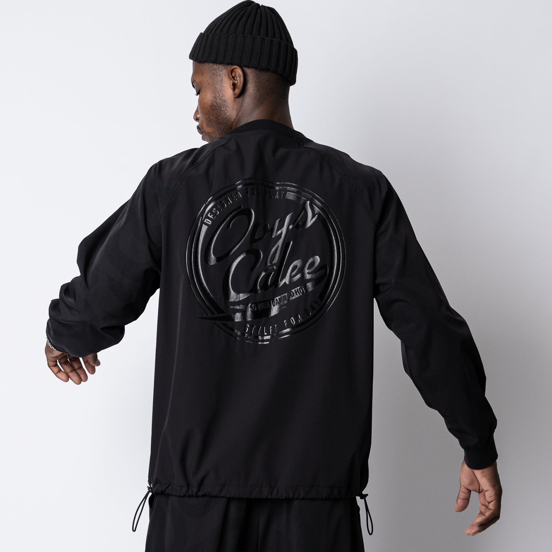 運動が溶け込んだライフスタイルを送る大人へ向けて、ワードローブを質的に豊かにするユーティリティウェアを提供するブランド、"ovys (オーヴィーズ)"とのコラボレートアイテム。伸縮性のあるナイロンボディーを使用し、両ブランドのロゴをプリントで落としたデザインのL/Sピステ。