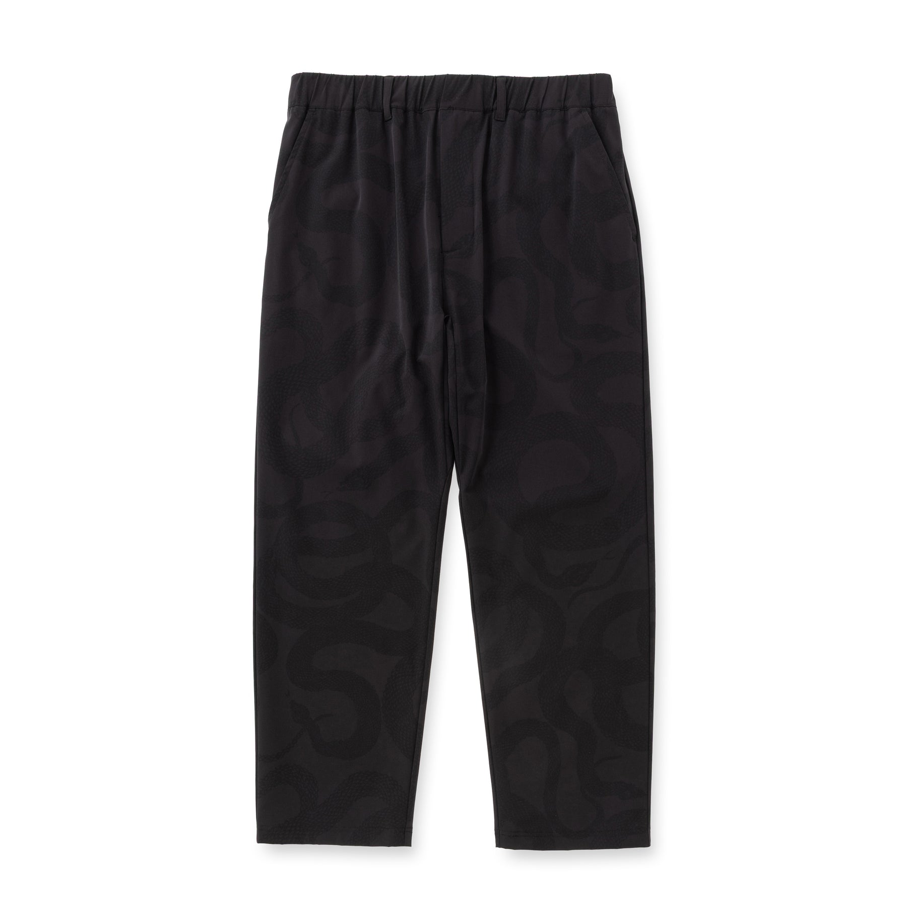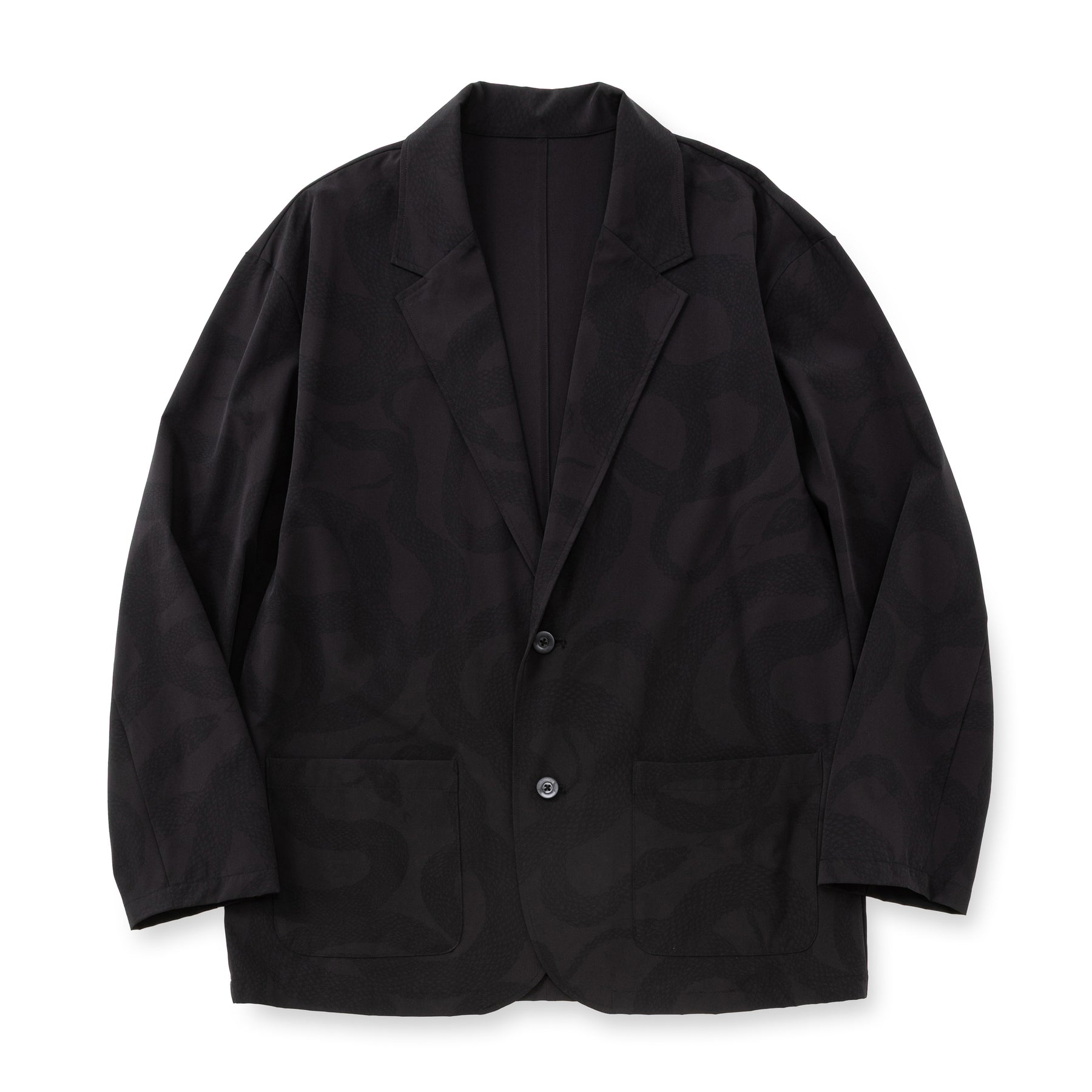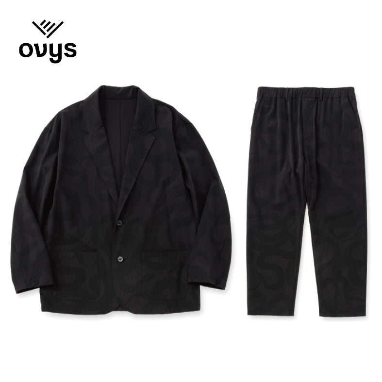運動が溶け込んだライフスタイルを送る大人へ向けて、ワードローブを質的に豊かにするユーティリティウェアを提供するブランド、"ovys (オーヴィーズ)"とのコラボレートアイテム。伸縮性のあるナイロンボディーを使用し、ブランドオリジナルのSNAKE PATTERNを同色で落としたデザイン。 上下セットアップ展開のトラベルジャケットとスラックス。