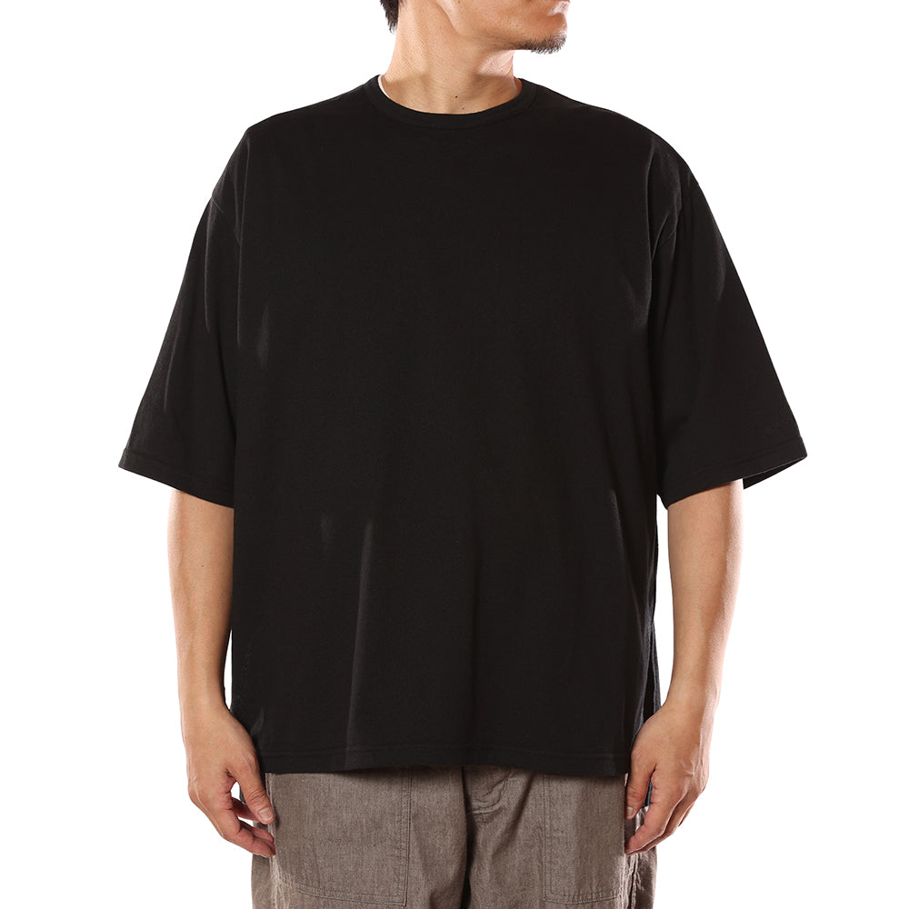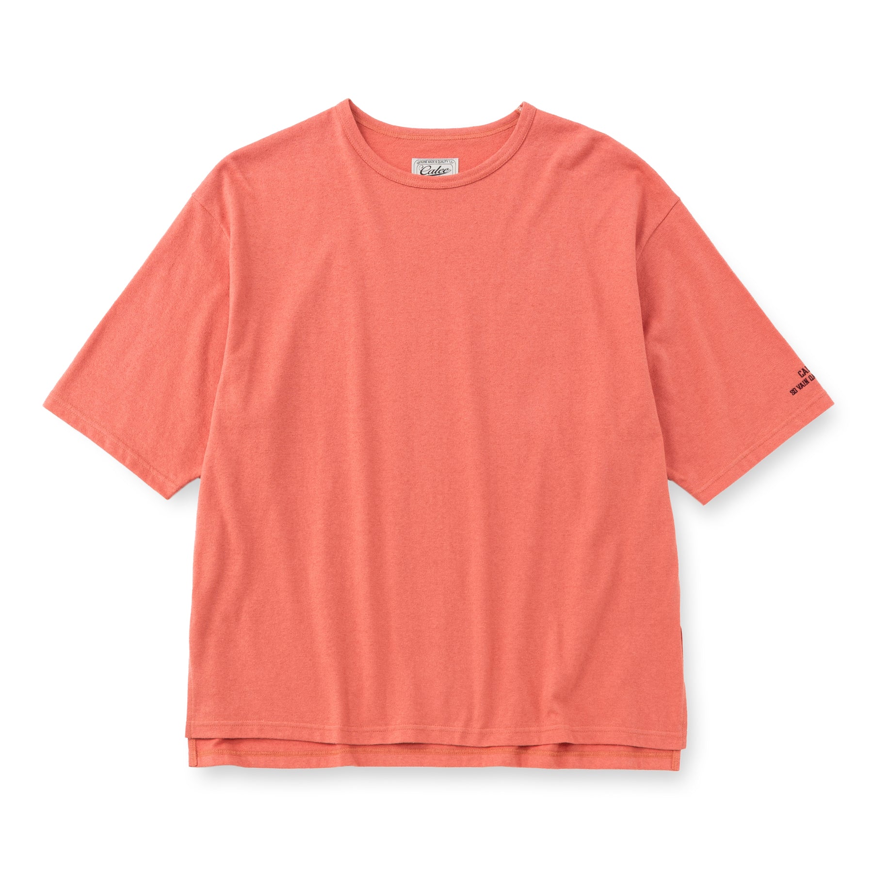 ブークレスリット5分袖カットソー。薄手のブークレー素材を採用。サイドにスリットが入り、左袖に刺繍が入る。