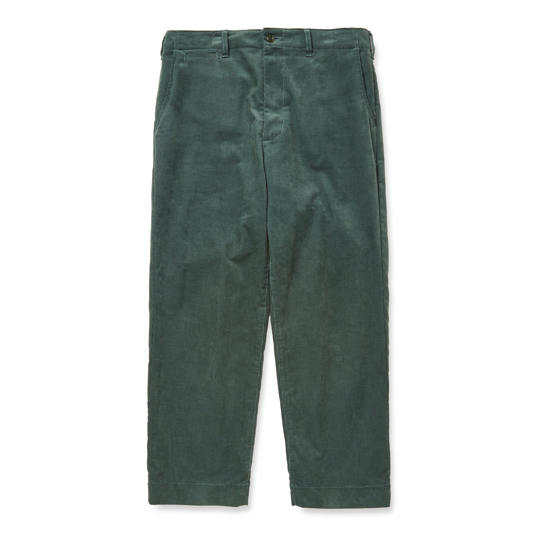 コーデュロイトラウザーズ。米綿主体の混綿を使用した13Wアンティークコーデュロイを採用。反応染料にて染色、生機、カット、染色の工程を日本で行なっている、希少なジャパンコーデュロイ。