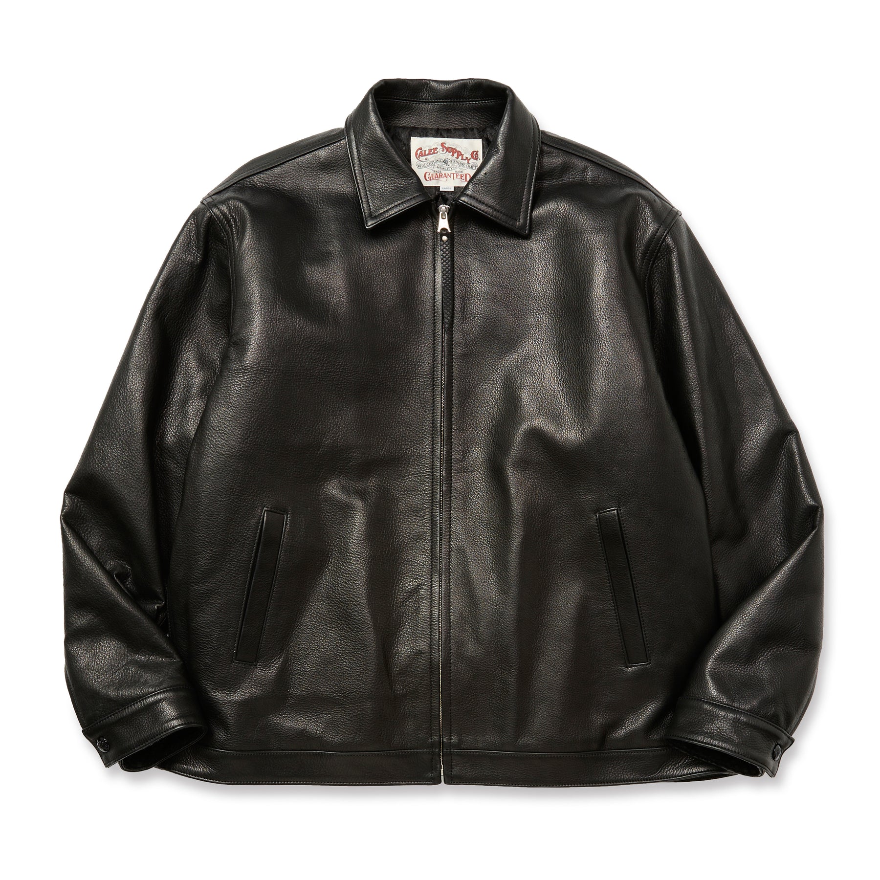 レザースウィングトップ。国産の牛革、クロームレザーを使用した国内生産のレザージャケット。裏地はオリジナルペイズリー柄の中綿キルト、襟裏、袖裏、引き手に蛇革を使用。