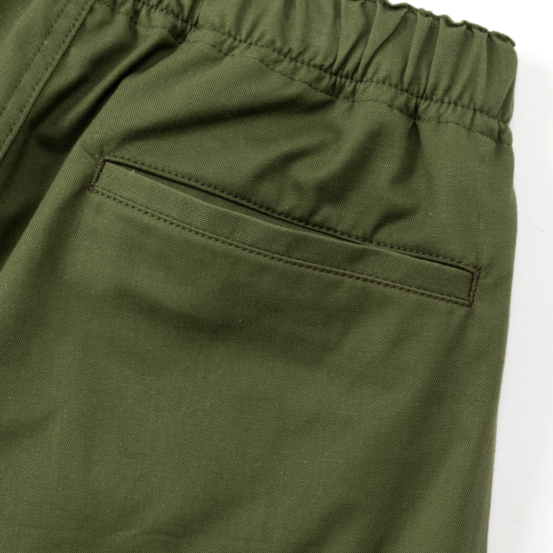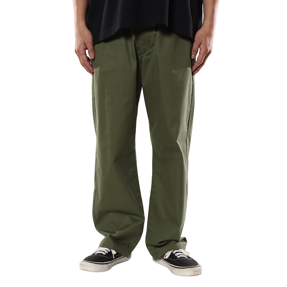 ネップバックチノパンツ。薄手のネップバックチノを採用し、チノサイドを表面に使用。ウエストゴム、紐仕様。