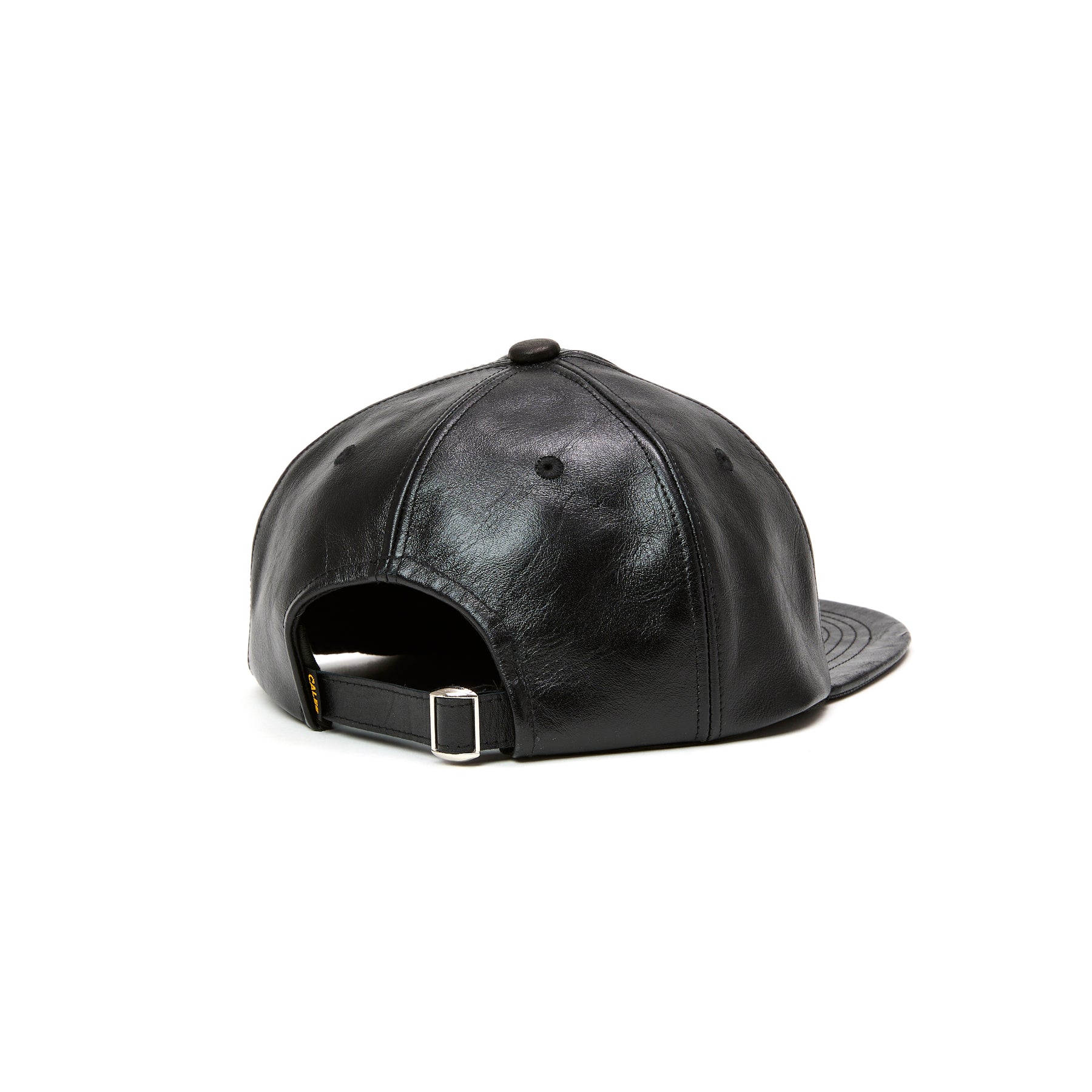 スタッズレザー浅型CAP キップレザーを使用し、フロントにスタッズワークを施している。バックルベルトアジャスター仕様。